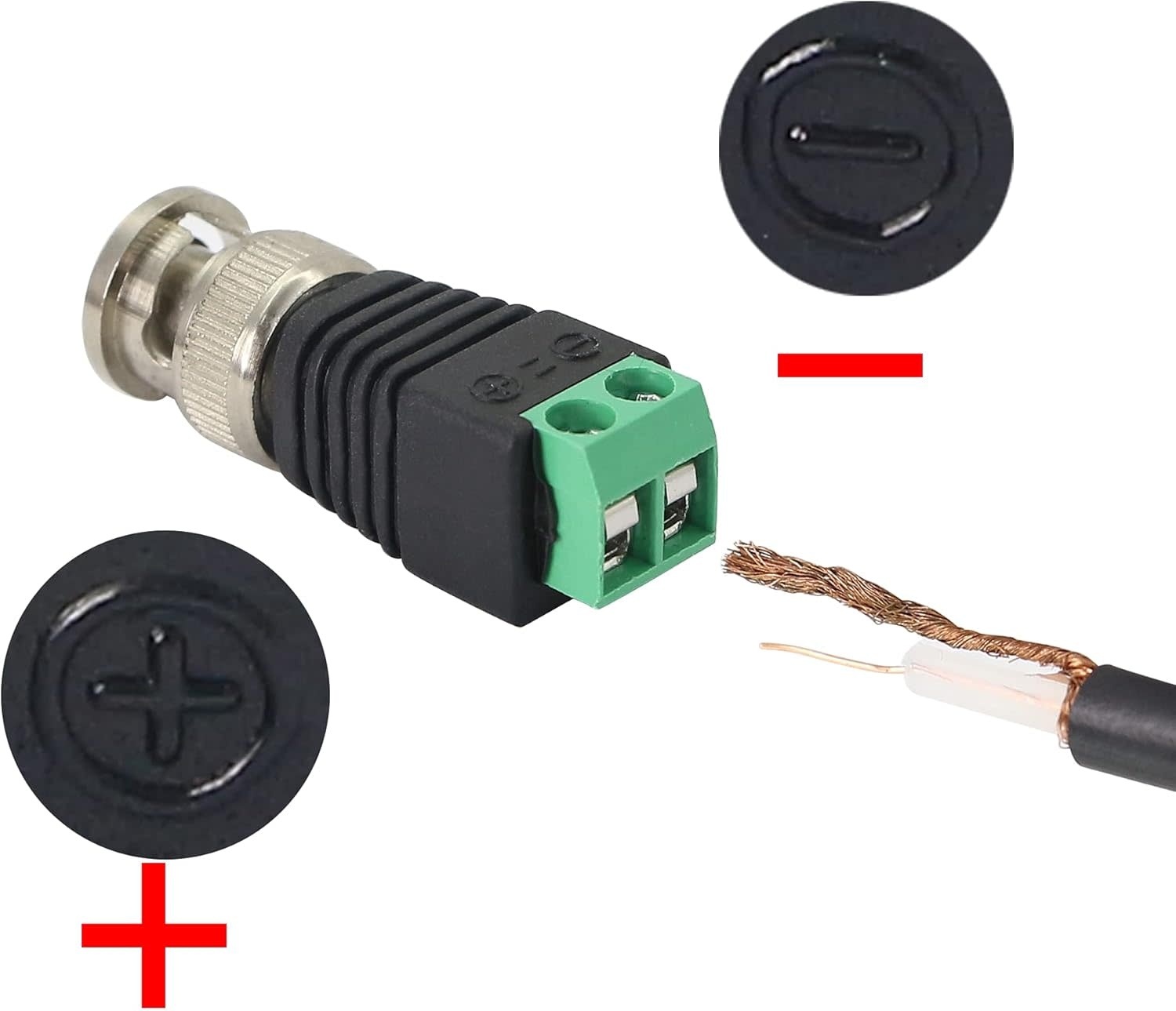 BNC/M-SOLDERLESS - PNGKNYOCN 1 Pack BNC Male Connector BNC to 2 Screw Terminal Solderless Adapter for Transmit CAT5 Coaxial Cable to CCTV Surveillance Camera